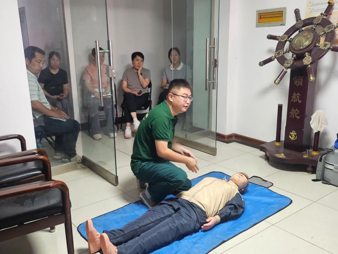 通过理论讲解与现场演示,参训人员学习了如何判断心脏骤停、正确实施胸外按压以及使用AED设备,掌握了“时间就是生命”的急救理念。